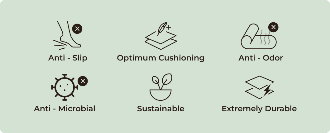 Our unique blend of cork and natural rubber makes the top layer of the mat extremely grippy for you to remain stable during intense sweaty yoga sessions.